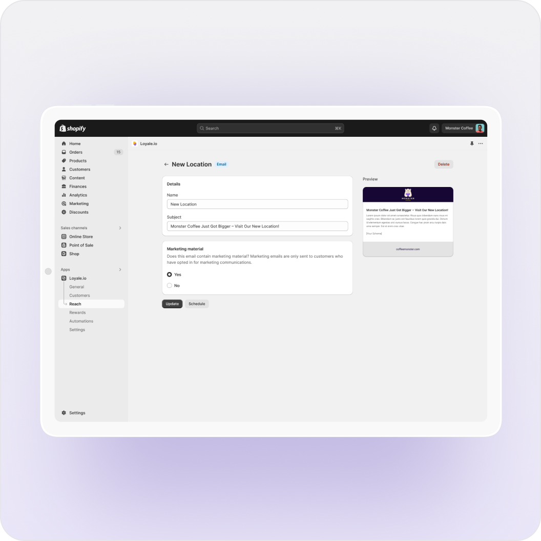 Create, promote, and track coupon campaigns. Automate email notifications to increase redemptions.