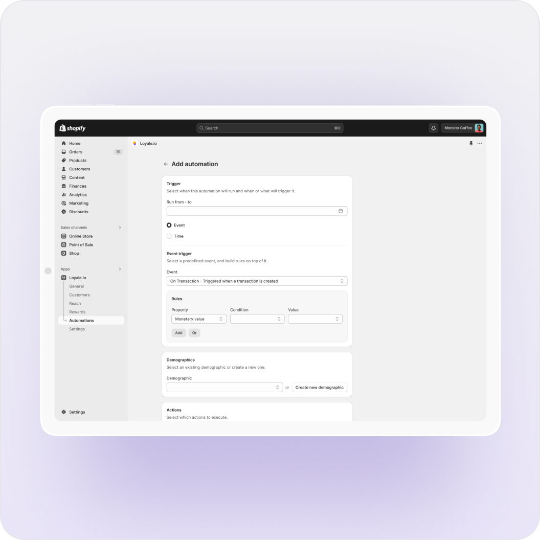 Everything is designed to work with just a few clicks. No complexities, no stress—just quick, intuitive setup and smart automations that run quietly in the background. You stay in control, your customers stay engaged, and your store keeps growing. Start rewarding more. Start earning more.