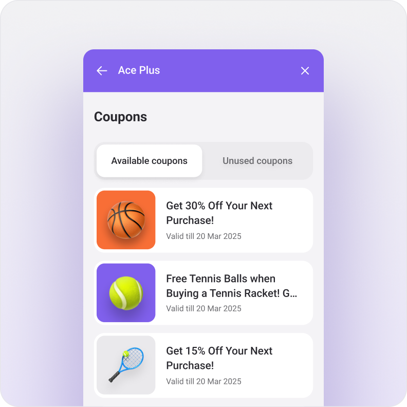 Keep customers engaged with a gamified loyalty system. Set spending or visit milestones to unlock exclusive perks and premium rewards.